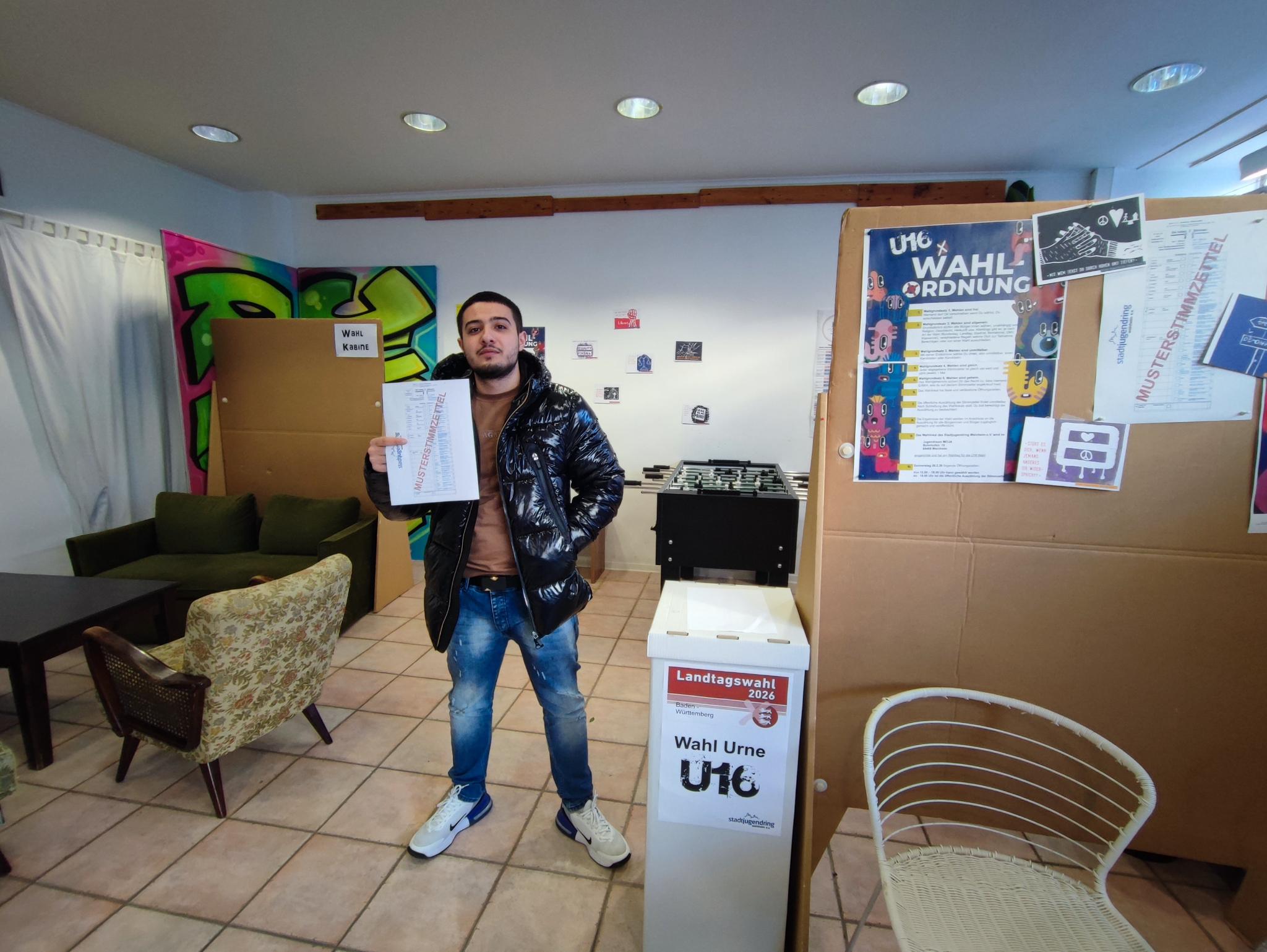 abwägen, entscheiden und abstimmen. Interessierte Schulen konnten sich im Vorfeld anmelden und erhielten ein kostenloses Wahlpaket zur Durchführung der U16-Wahl in ihren Klassen. Die ausgefüllten Stimmzettel wurden abgeholt. Alternativ bestand die Möglichkeit, direkt in der Jugendeinrichtung MOJA in der Bahnhofstraße 19 in Weinheim zu wählen. Dort war ein Wahllokal eingerichtet, in dem sich Jugendliche zusätzlich über die anstehende Landtagswahl informieren konnten. Um 18 Uhr schloss das Wahllokal, anschließend begann die öffentliche Auszählung der Stimmen.