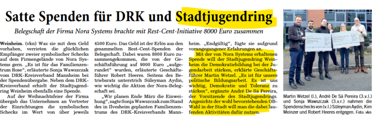 Eine Weihnachtsüberraschung der besonderen Art für den SJR Wir sagen Nora Systems